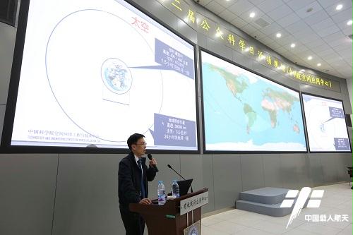 图1:张伟研究员作科普报告(杨吉 摄 图片来源:中国科学院空间应用中心)
