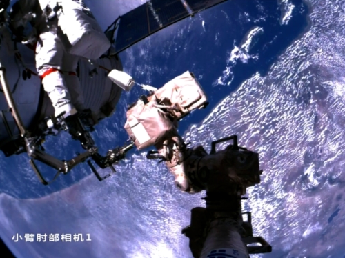 2025-12北京时间2025年12月9日18时45分,经过约8小时的出舱活动,神舟二十一号乘组航天员张陆、武飞、张洪章密切协同,在空间站机械臂和地面...