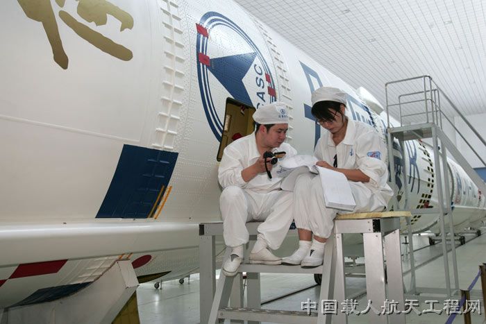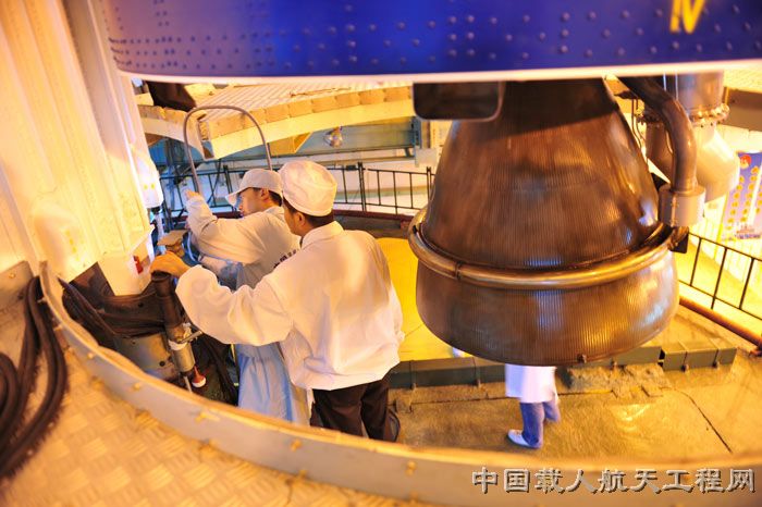 图7:工作人员对长二F火箭测试。(汪江波 摄)
