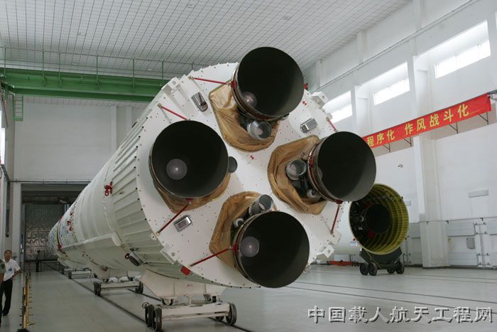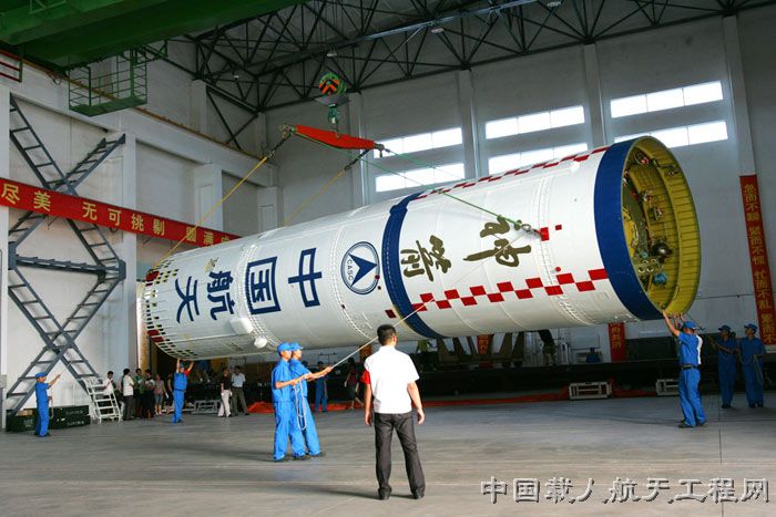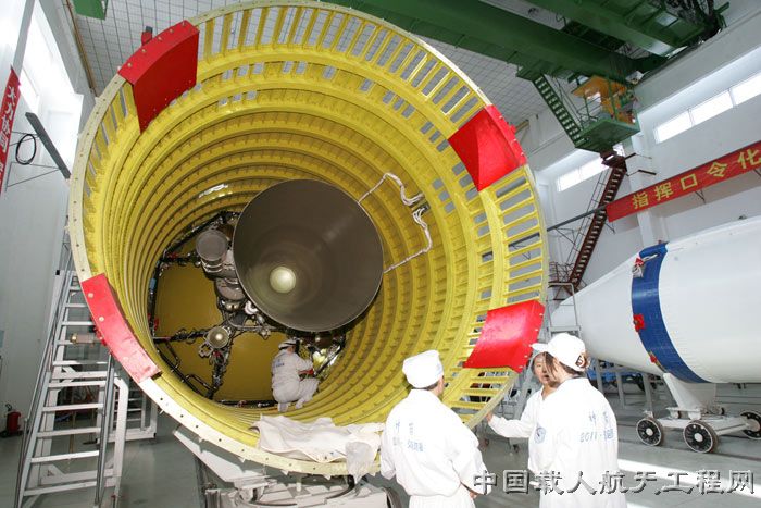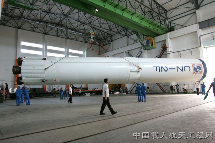 图1:2011年7月23日,长二F火箭卸装。(汪江波 摄 )