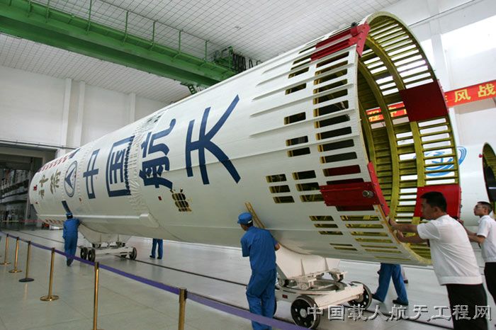 图2:7月23日长二F火箭卸装。(汪江波 摄)