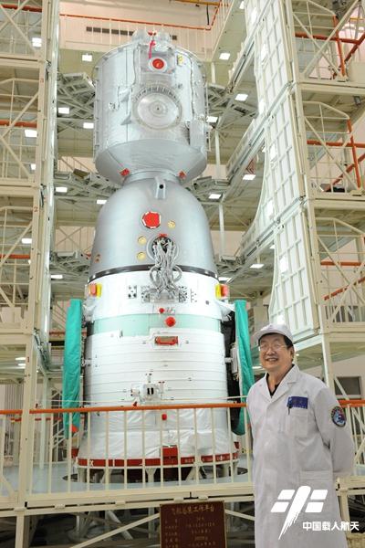 图:张柏楠总设计师在神舟飞船前(图片来源:中国航天报)