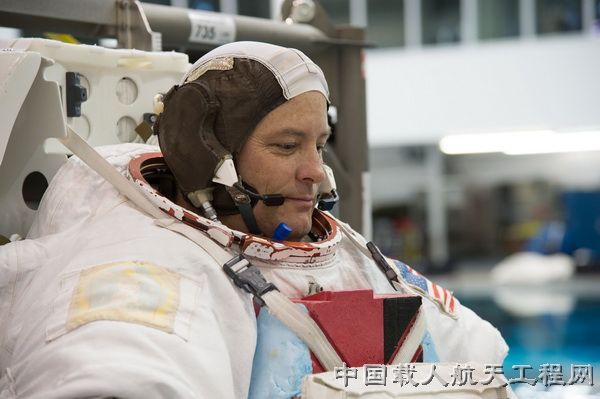 图:航天员廷格正在接受出舱任务的训练(图片来源:NASA网站)