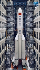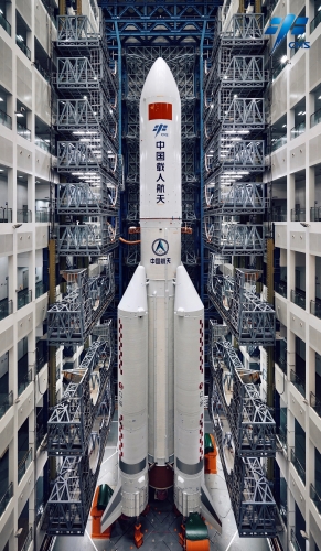 梦天实验舱与长征五号B火箭组合体垂直转运