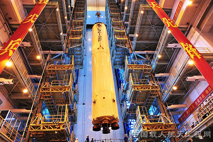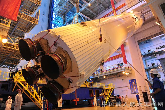 图2:天宫一号运载火箭二级火箭吊装(李玉建 摄)