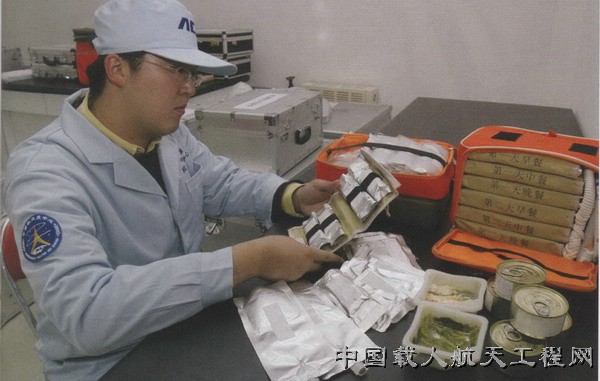 2005年10月9日,医监医保人员精心为费俊龙、聂海胜准备太空食品
