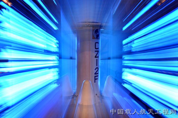 图2:天宫一号组合体垂直整体转运。(武向荣 摄)