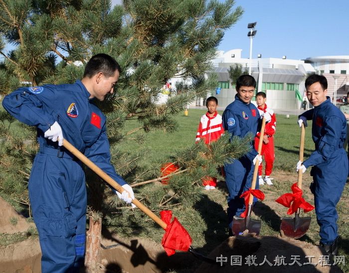 2008年8月29日神舟七号航天员在问天阁种植纪念树