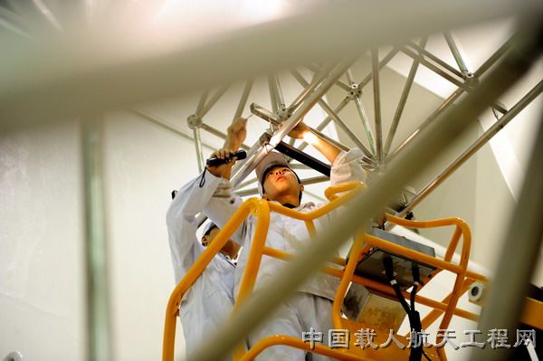 “天宫一号”目标飞行器,已于9月29日晚由“长征二号F”T1运载火箭成功送入预定轨道,等候与“神舟八号”飞船交会对接。本组图片记录了“天宫一号”升空前,科研人员进行检测、试验的情景。