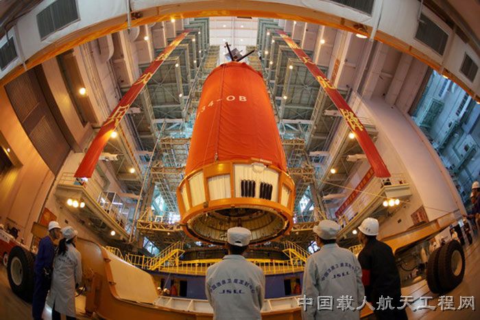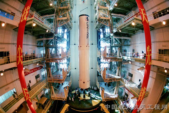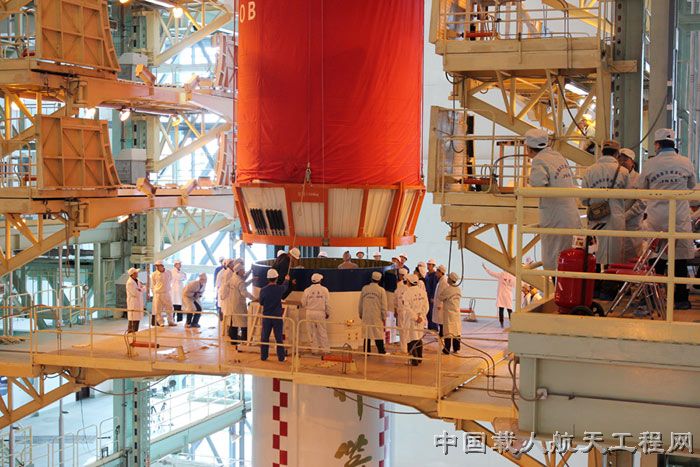 图2:天宫一号与运载火箭对接组装(马威武 摄)
