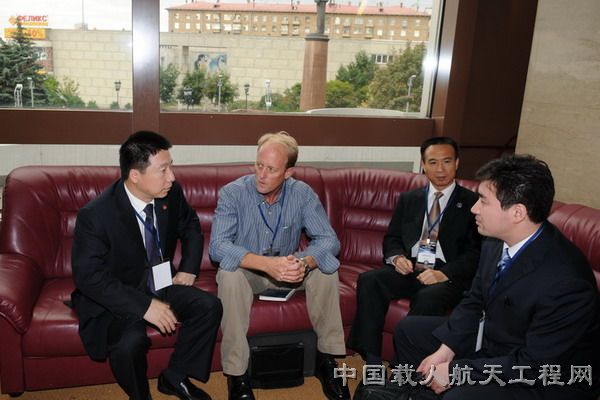 图2:杨利伟、费俊龙与协会秘书长安迪(左二)进行交流