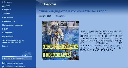 据加加林中心官网3月22日报道,负责载人飞船及空间站航天员选拔及乘组任命的部际委员会做出决定:加加林中心从3月14日起启动补充招募航天员候选人的工作,入选者将成为“俄罗斯航天”国家集团航天员大队的预备航天员。