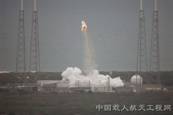 图:“龙”载人飞船首次成功试验发射中止系统(图片来源:NASA网站)