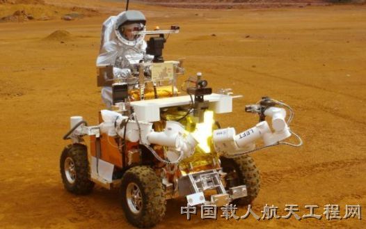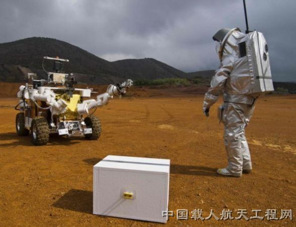 图1:新一代航天服Aouda X 和自动漫游车Eurobot 正在西班牙安达卢西亚地区进行野外测试