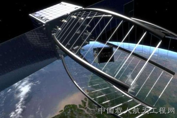 图:清洁卫星配备一个圆锥形探头来推动空间碎片改变原来轨道,然后坠入地球大气层烧毁(图片来源:腾讯网站)