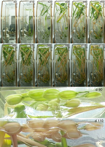 实验历时120天,水稻成功结籽,并于同年12月随神舟十四号飞船返回舱带回地球。
