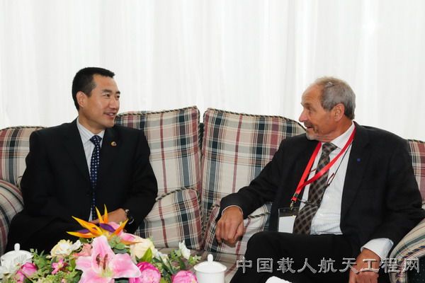 图:翟志刚与伯尼尔•费尔巴赫交谈(摄影:张智慧)