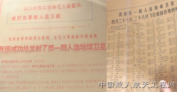图2:老人保存的中国第一颗人造卫星成功发射的简报和飞抵各个城市上空时间的报道