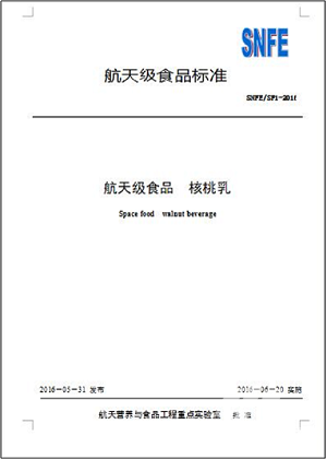 2014年,中国航天员科研训练中心支持云南省启动了航天级食品标准制定、推广工作。经过反复对首批十八家企业的11个类别共17种产品的生产厂地实地考察、调研及对产品的严格检测,云南摩尔农庄生物科技开发有限公司的“聪滋”核桃乳通过检测,成为中国首个航天核桃乳食品,并将其制定成为航天级核桃乳食品标准。