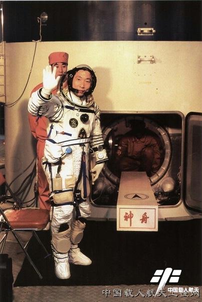 图1:“神舟五号”任务航天员杨利伟进入飞船前向人们挥手致意