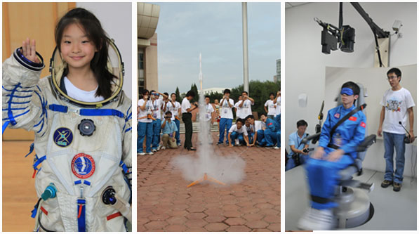 亲临航天员学习的专用教室聆听载人航天科普讲座,观看神舟飞船遨游太空的影像资料及航天员在太空拍摄的壮丽景象,参观中国空间技术研究院、中国运载火箭技术研究院。