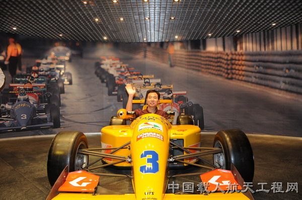 图2:参观大赛车博物馆,景海鹏驾车拍照留念(刘爽 摄)